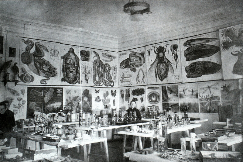 Кабинет естествознания Вятского коммерческого училища. 1910-е гг. Значительная часть наглядных пособий кабинета была сделана в Вятской мастерской учебных пособий.