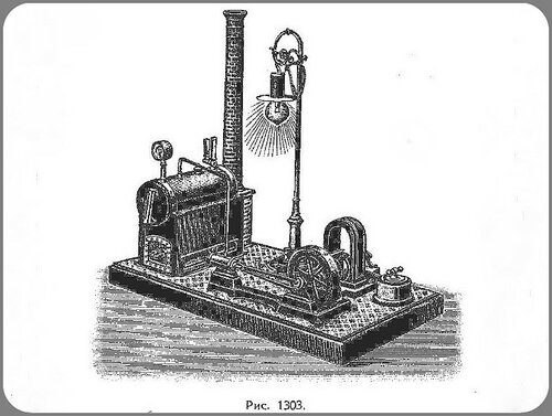 Действующая модель: динамо-машина с паровым двигателем. Иллюстр. каталог МУП ВГЗ. 1912 г.