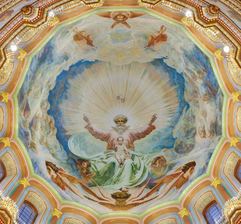 Живопись в храме - это поздняя академическая живопись конца XIX века.