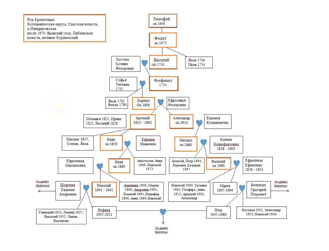 Дети: Андрей *1865+1911, возможно: Петр *1868-?, Дмитрий*?+?, Василий *1873+?