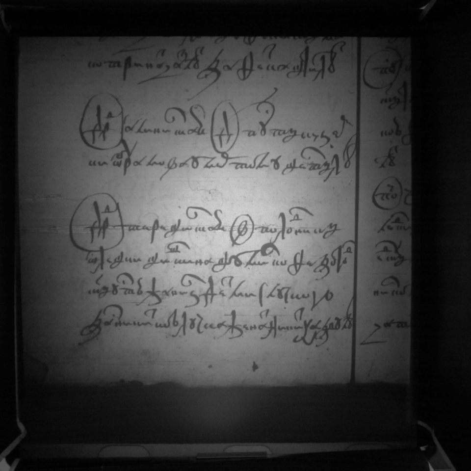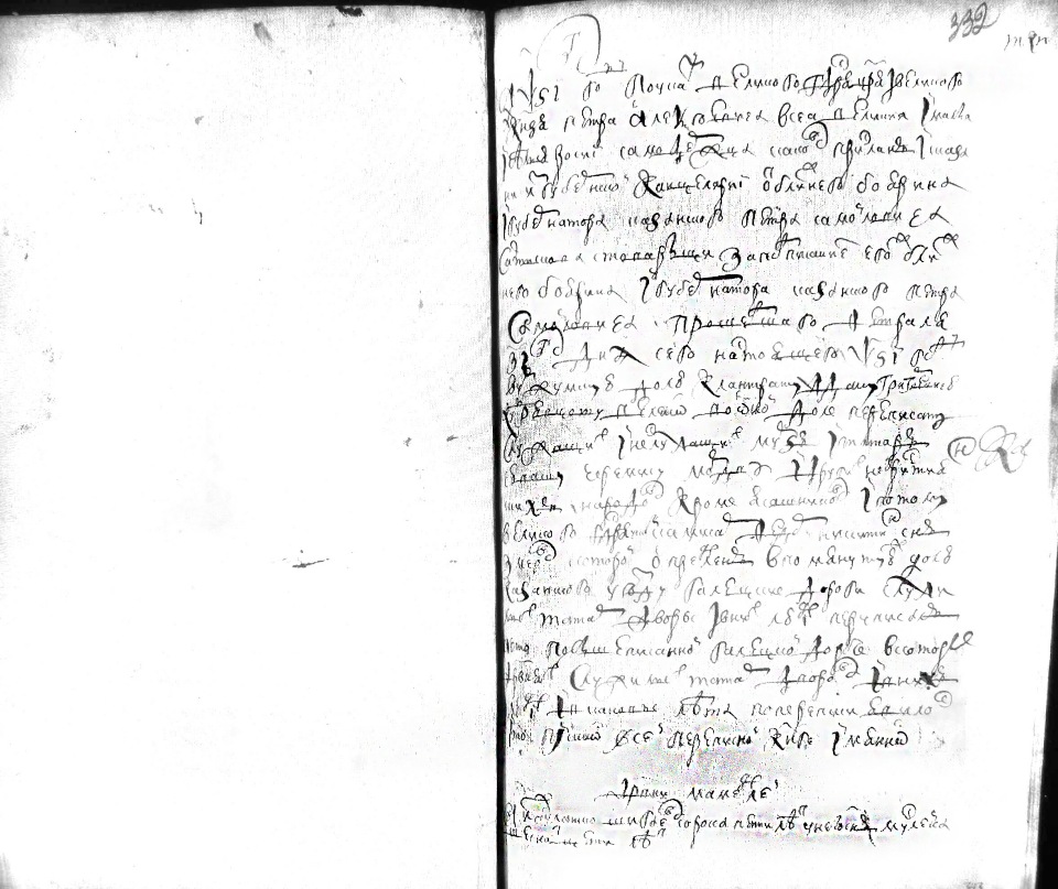 Во дворе Бекметка Тюнин[?] 80 лет, бездетен, а по скаске ево, что он казанской слобатцкой служилой татарин, а съехал де он ис Казани по<с>ле пожарного времени в прошлом 715-м году, и ныне живет в той деревне Ковалей в пус…… вытном выморочном служилого ж татарина в Тамышкове дворе, а чей де сын, <не з>нает