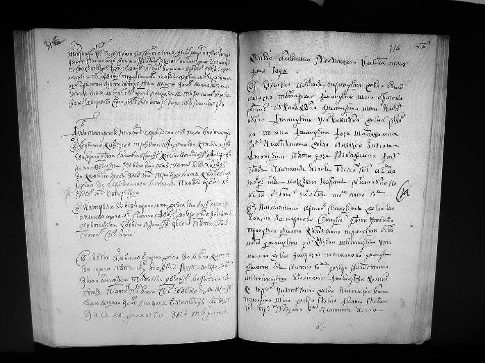 1716-го году по указу Великого Государя Царя и Великого Князя Петра Алексеевича всеа Великия и Малыя и Белыя Росии самодержца, каков прислан ис Казани, из губернской канцелярии, от ближнего боярина и губернатора казанского Петра Самойловича Салтыкова с товарыщи, за подписанием его ж ближнего боярина и губернатора казанского Петра Самойловича прошедшаго февраля 17-го дня сего настоящего 716 году в Уржумскую долю к лантрату Ждану Григорьевичю Кудрявцову велено во оной доле переписать служащих и неслужащих мурз и татар, чювашу, черемису, мордву и других нехристиянских народов, кроме ясашников, и по тому Великого Государя указу камисар Федор Никитин сын Змеев, которой определен в помянутую ж долю Казанского уезду Галецкие дороги, служилых татар дворы и в них людей переписал …….то по вышеписанной Галецкой дороге в которых деревнях служилых татар дворов, и в них людей, и в каковы лета по переписи явилось, и то писано в сей переписной книге имянно