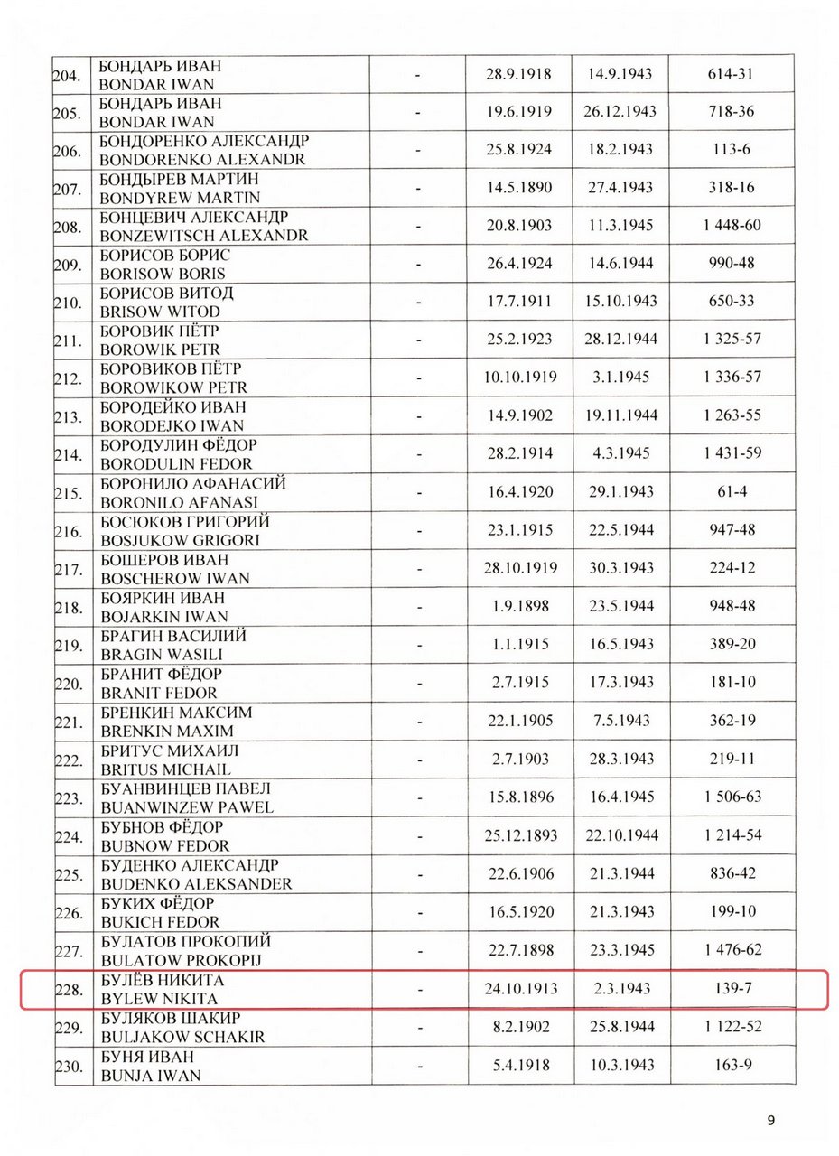 | 4312043020 | БЫЛЁВ Никита Алексеевич | 1913 г. р., из д. Были Сосновского с/с, красноармеец, стрелок, пропал без вести в июле 1941 г. | Кировская область, Унинский район |