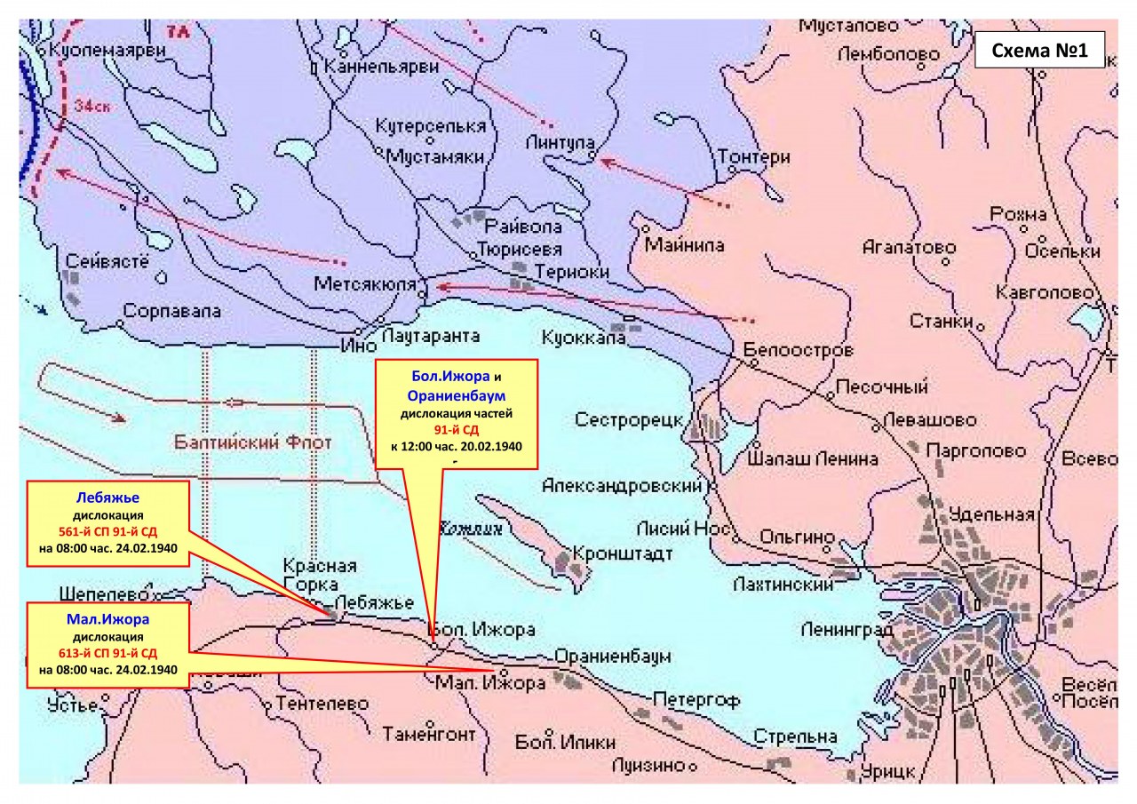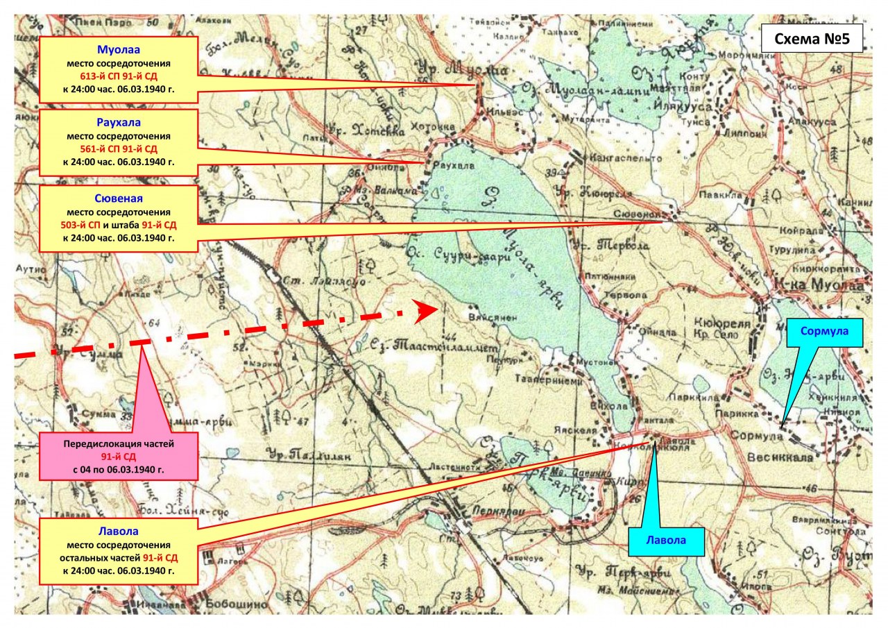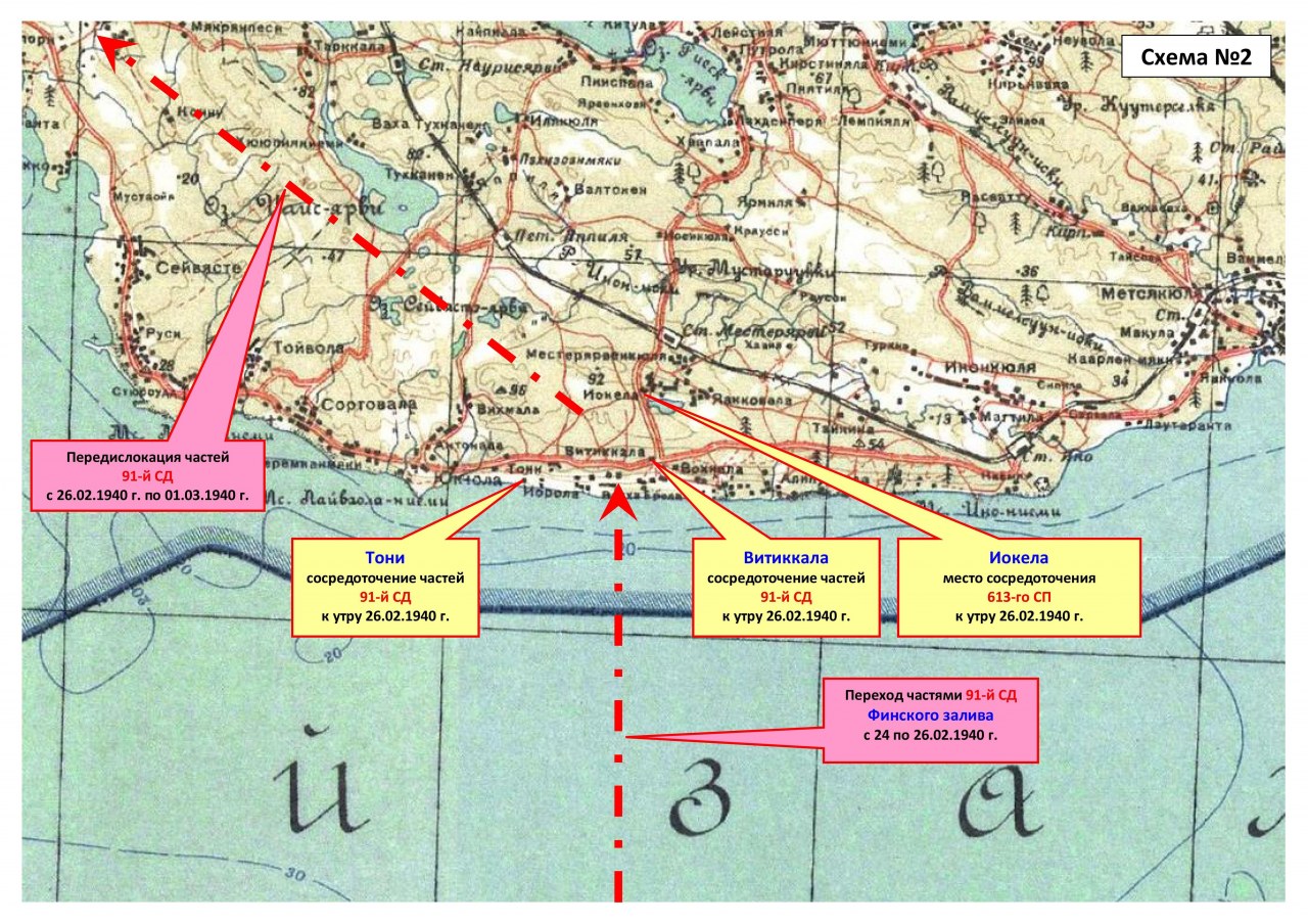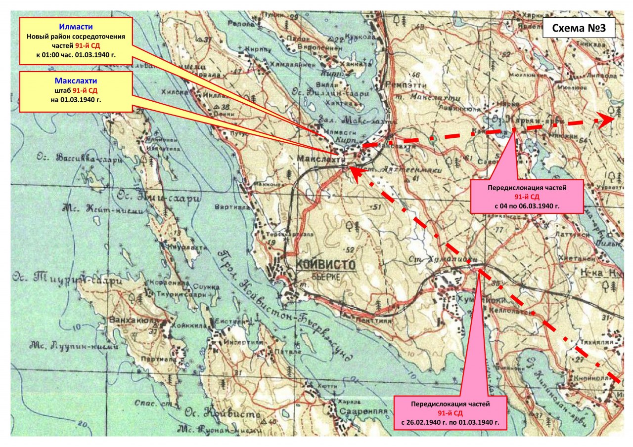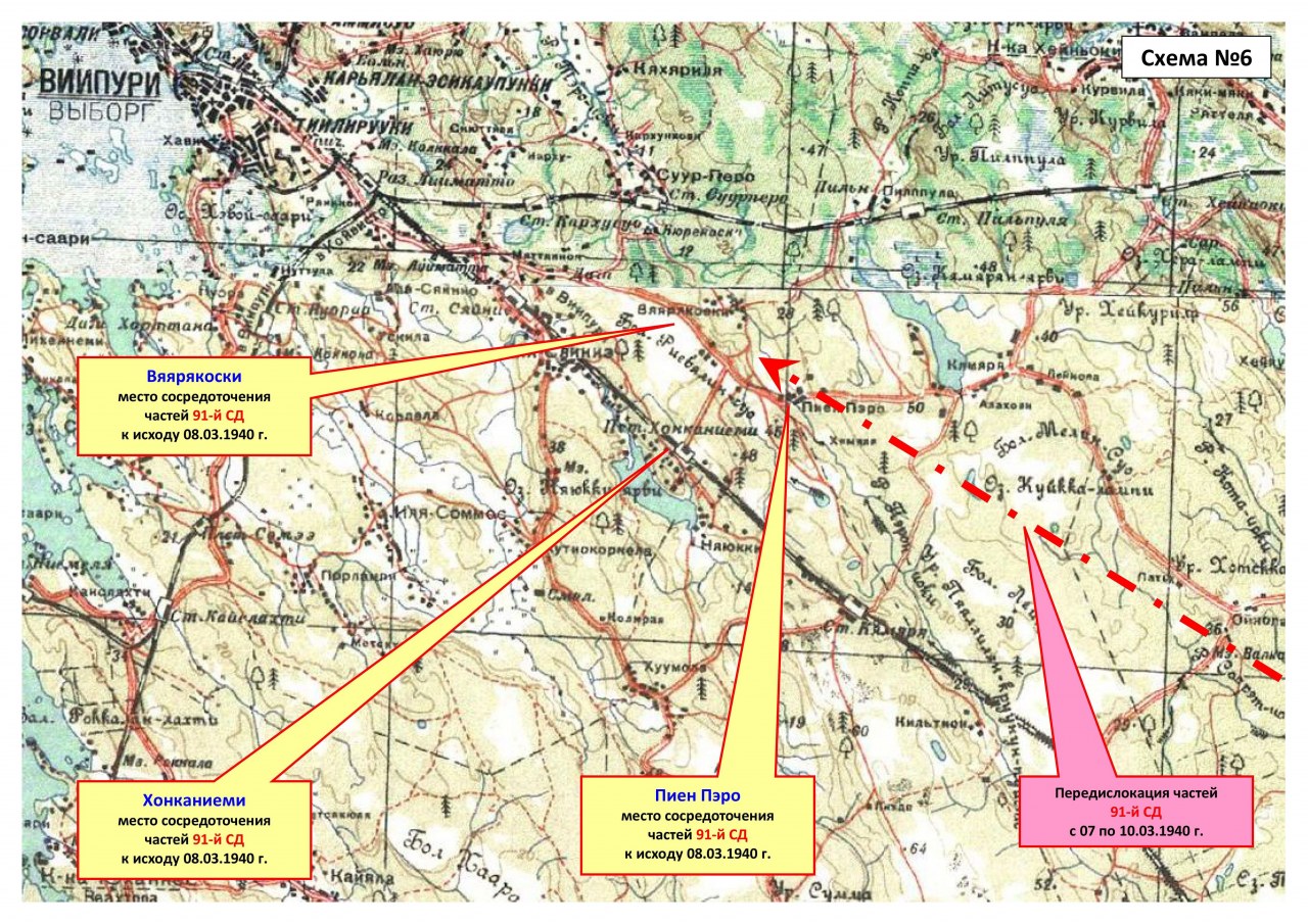 10.03.1940 г. к 8:00 час. 91-я дивизия сосредоточилась в районе Вярикоски, Ханкониеми, Пиенперя. На этот момент она входила в состав 34-го корпуса.
