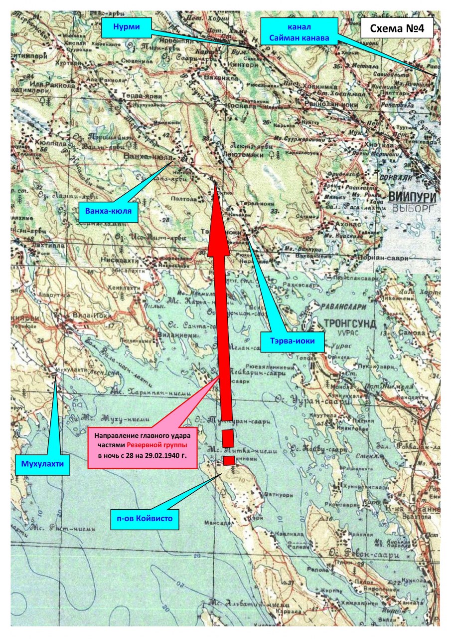 Опущу все перемещения дивизии в феврале – начале марта 1940 г., при которых она меняла места своей дислокации, в том числе с переходом через Финский залив (40-45 км.), но фактически не принимала участия в боевых действиях. Перейду сразу к тому времени, когда дивизия была привлечена к выполнению боевых задач.