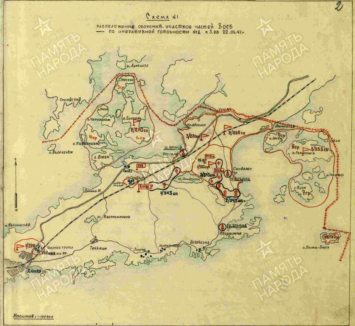 Перед 8-й отдельной стрелковой бригадой была поставлена задача – оборонять военно-морскую базу Ханко с суши, моря и воздуха. В апреле – мае – июне вся бригада была переброшена на кораблях по Финскому заливу на Ханко и немедленно заняла оборону в пунктах: оо. Хесте, Куэн, Германсе, Экен; сухопутная граница Лаппвик – Коферхар; оо. Бинорен, Престен, Кадермуен, Хорсен, а также по северному берегу полуострова. Остальные пункты обороны занимали моряки и пограничники. Заняв оборону, части бригады немедленно приступили к строительству укреплений и стали готовиться к защите порученной территории. Одновременно со строительством оборонительных сооружений проводилась боевая учеба.