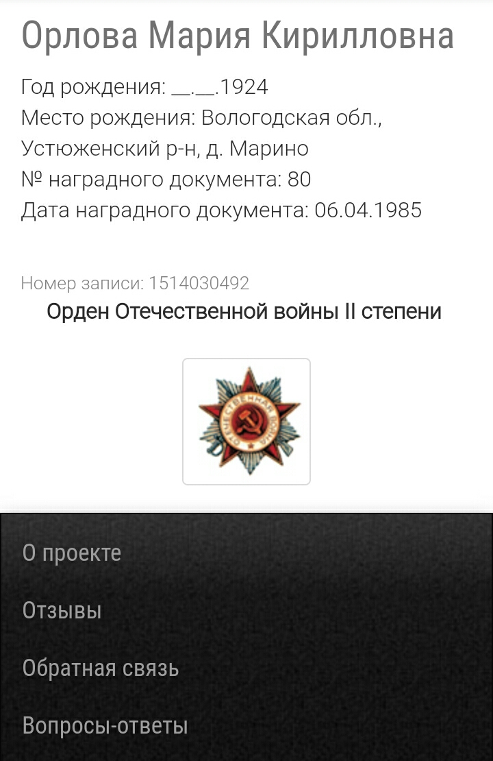 | призвана | 1942 | деревня Жабриевская (Сунский район, Кировская область) - существующий н.п. | |