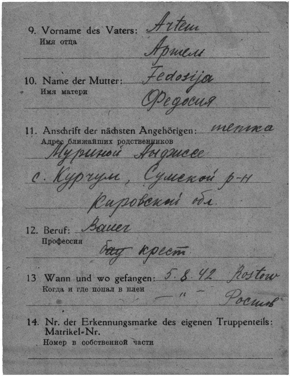| Попал в плен | 05.08.1942 | под Ростовом | www.obd-memorial.ru |