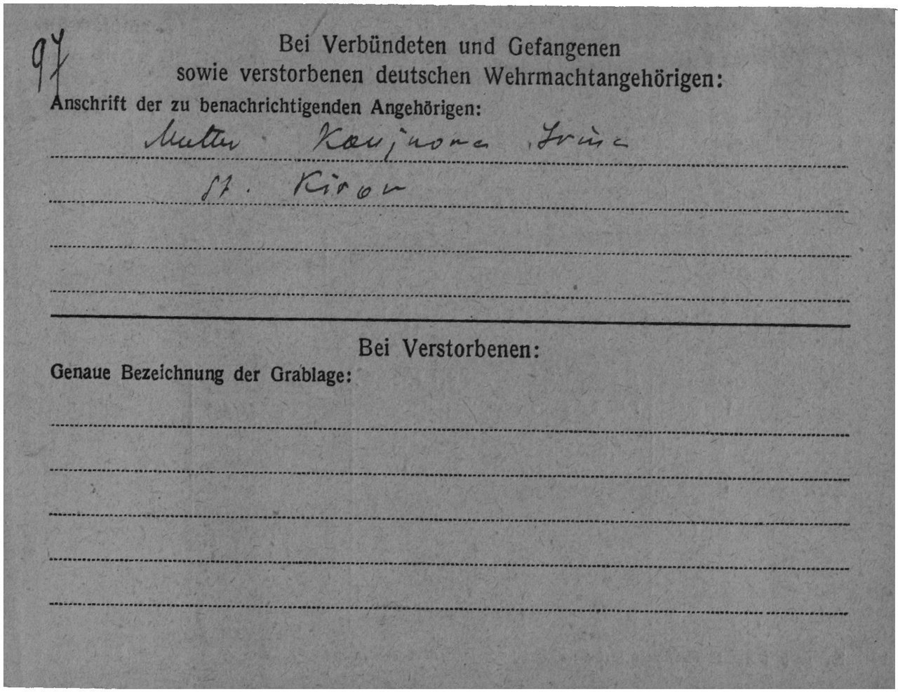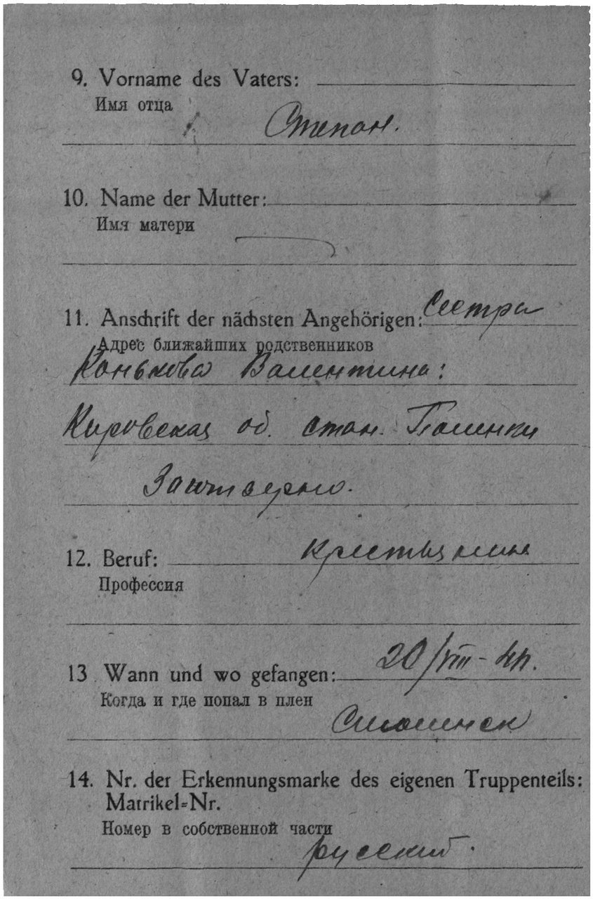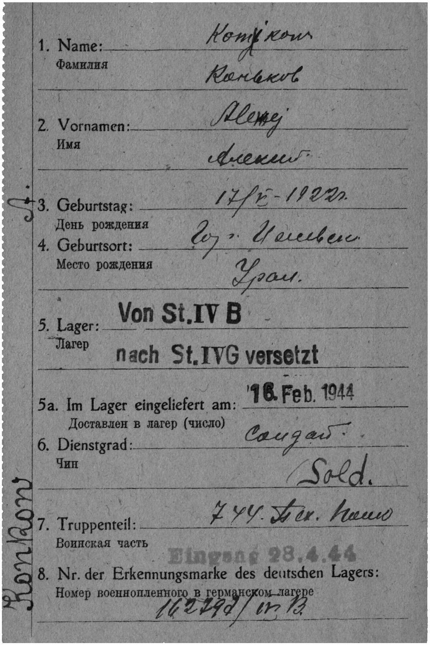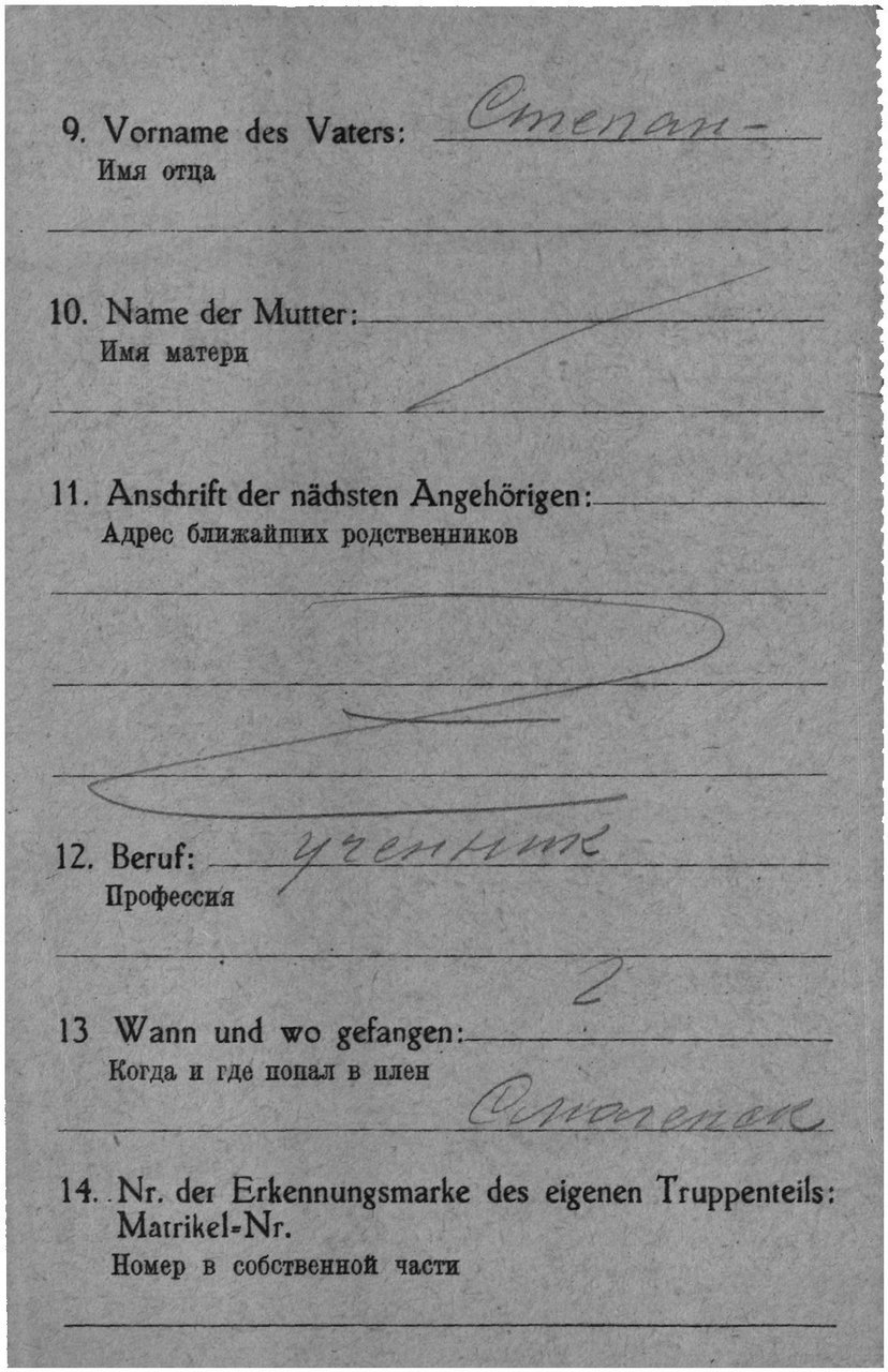 Карта военнопленного, лицевая сторона https://www.obd-memorial.ru/html/info.htm?id=82737446&page=17Карта военнопленного, обратная сторона https://www.obd-memorial.ru/html/info.htm?id=82737446&page=18Зелёная карта, лицевая сторона https://www.obd-memorial.ru/html/info.htm?id=82737446&page=1Зелёная карта, обратная сторона https://www.obd-memorial.ru/html/info.htm?id=82737446&page=2Зелёная карта, лицевая сторона https://www.obd-memorial.ru/html/info.htm?id=82737446&page=3Зелёная карта, обратная сторона https://www.obd-memorial.ru/html/info.htm?id=82737446&page=4Зелёная карта, лицевая сторона https://www.obd-memorial.ru/html/info.htm?id=82737446&page=5Зелёная карта, обратная сторона https://www.obd-memorial.ru/html/info.htm?id=82737446&page=6Зелёная карта, лицевая сторона https://www.obd-memorial.ru/html/info.htm?id=82737446&page=7Зелёная карта, обратная сторона https://www.obd-memorial.ru/html/info.htm?id=82737446&page=8Зелёная карта, лицевая сторона https://www.obd-memorial.ru/html/info.htm?id=82737446&page=9Зелёная карта, обратная сторона https://www.obd-memorial.ru/html/info.htm?id=82737446&page=10Информация о военнопленном https://www.obd-memorial.ru/html/info.htm?id=82737446&page=11Лазаретная карта, лицевая сторона https://www.obd-memorial.ru/html/info.htm?id=82737446&page=13Лазаретная карта, обратная сторона https://www.obd-memorial.ru/html/info.htm?id=82737446&page=14Лазаретная карта, лицевая сторона https://www.obd-memorial.ru/html/info.htm?id=82737446&page=15Лазаретная карта, обратная сторона https://www.obd-memorial.ru/html/info.htm?id=82737446&page=16Донесение о военнопленных https://www.obd-memorial.ru/html/info.htm?id=78871415