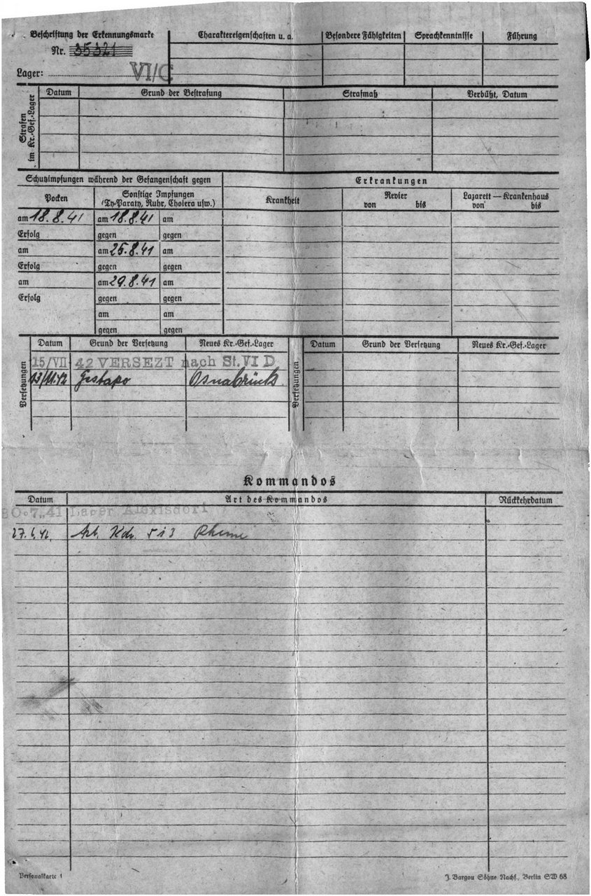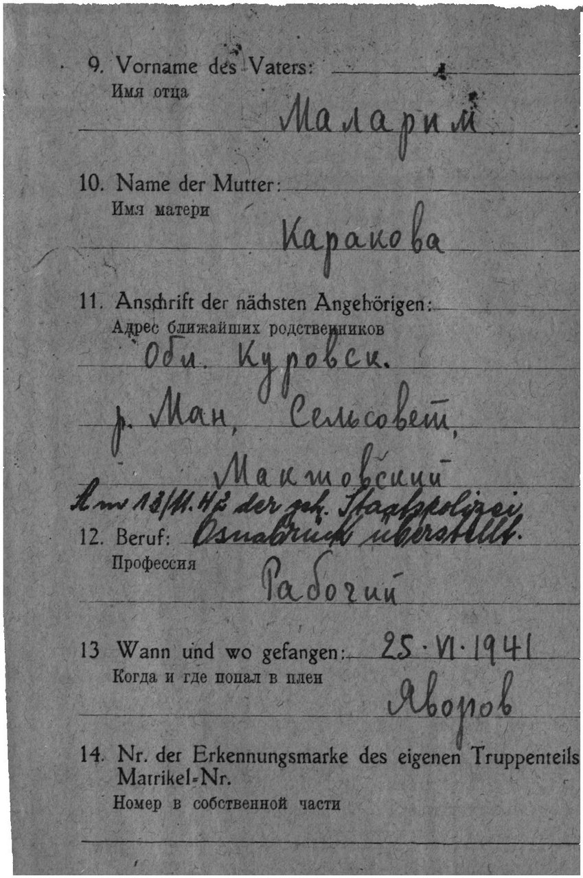 Карта военнопленного, лицевая сторона https://www.obd-memorial.ru/html/info.htm?id=82739527&page=7Карта военнопленного, обратная сторона https://www.obd-memorial.ru/html/info.htm?id=82739527&page=8Зелёная карта, лицевая сторона https://www.obd-memorial.ru/html/info.htm?id=82739527&page=1Зелёная карта, обратная сторона https://www.obd-memorial.ru/html/info.htm?id=82739527&page=2Зелёная карта, лицевая сторона https://www.obd-memorial.ru/html/info.htm?id=82739527&page=3Зелёная карта, обратная сторона https://www.obd-memorial.ru/html/info.htm?id=82739527&page=4Карта заключённого, лицевая сторона https://www.obd-memorial.ru/html/info.htm?id=82739527&page=5Карта заключённого, обратная сторона https://www.obd-memorial.ru/html/info.htm?id=82739527&page=6