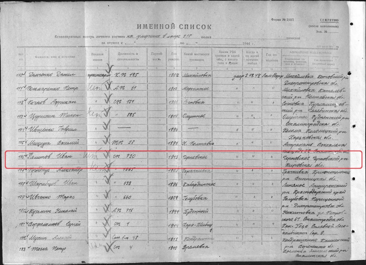 Место захоронения Политова Ивана Тимофеевича: