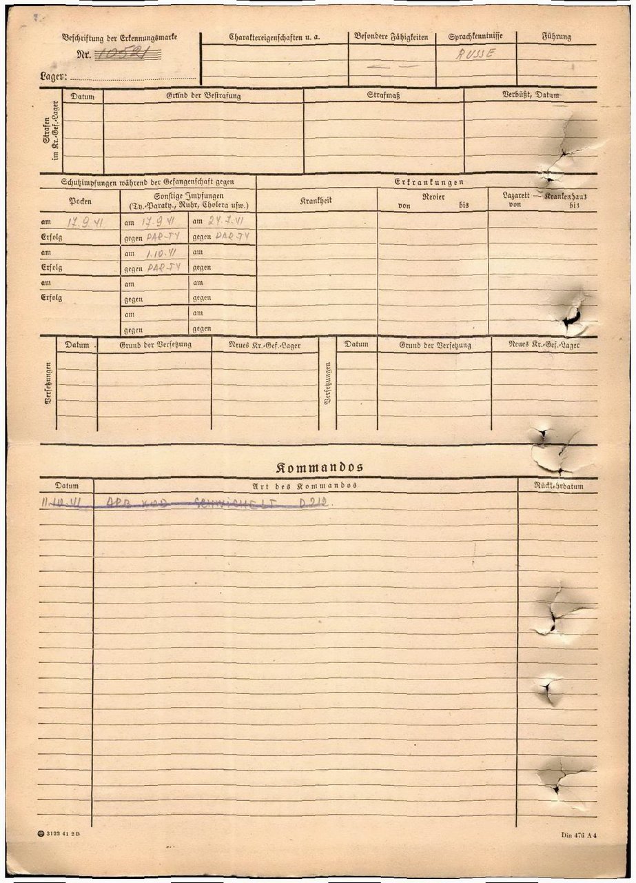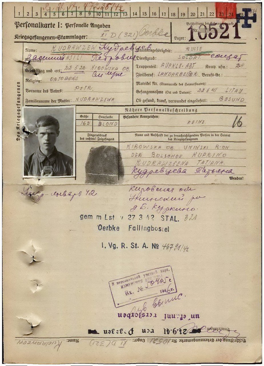 | Умер | Между Январь 1942 и 27.03.1942 | Stalag XI D (321) Oerbke (Эрбке, Германия) | Умер в немецком плену, в лагере военнопленных Эрбке. |