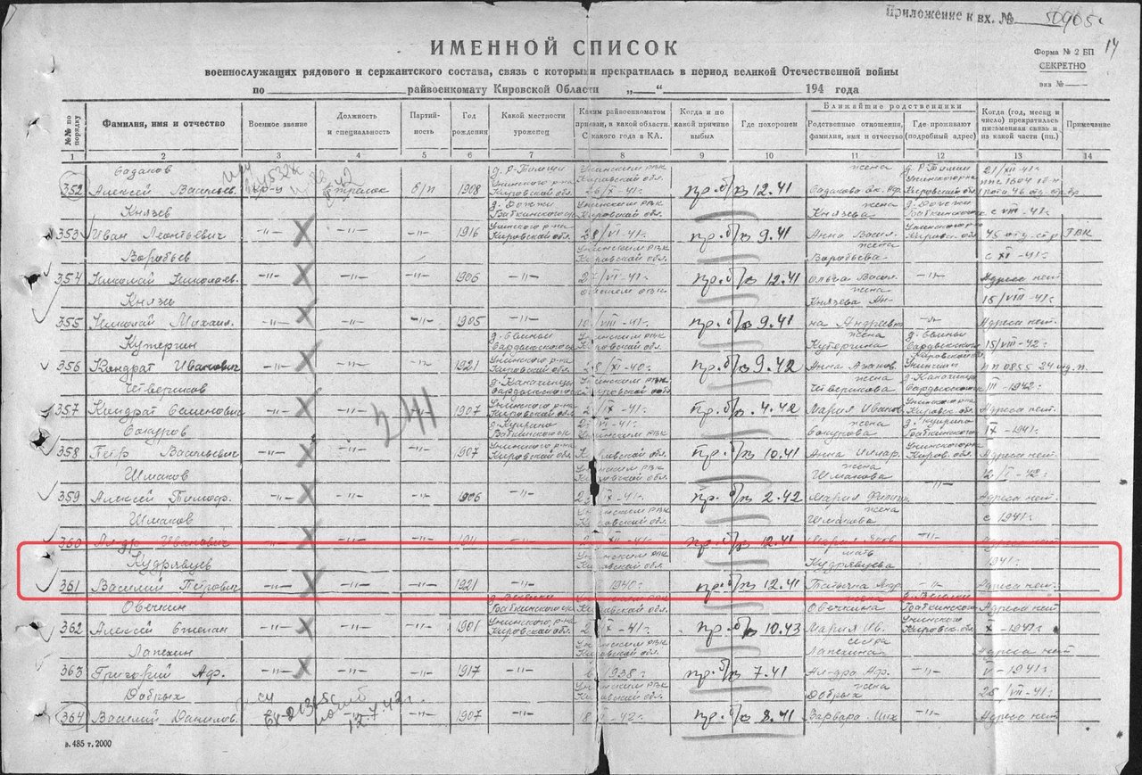 | 4312086003 | КУДРЯВЦЕВ Василий Петрович | 1921 г. р., из д. Куприно Канахинского с/с, красноармеец, стрелок, пропал без вести в декабре 1941 г. | Кировская область, Унинский район |