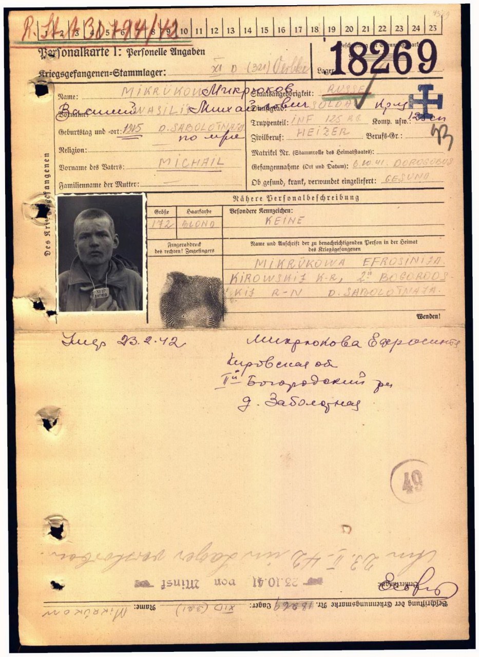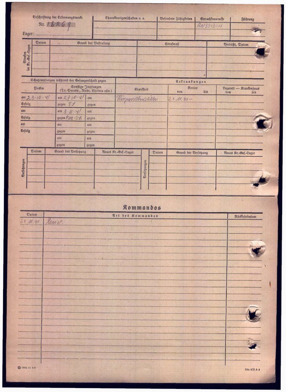 | Умер | 23.02.1942 | Stalag XI D (321) Oerbke (Эрбке, Германия) | Умер в немецком плену, в ревире лагеря военнопленных Эрбке. |