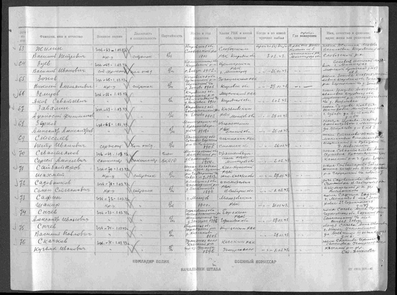 Воинская часть: 1 стр. батальон 11 осбр Дата прибытия: 16.10.1942 (О бригаде https://rodnaya-vyatka.ru/blog/1180/98386)