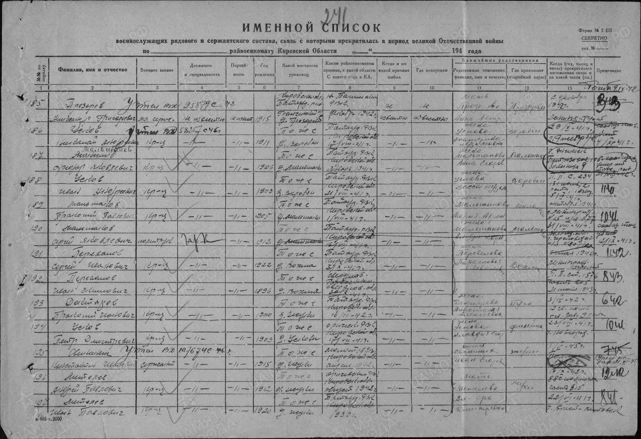 | 4314595019 | УСКОВ Петр Дмитриевич | 1909 г. р., из д. Усковы Беляченского с/с Татауровского р-на, призван Оричевским РВК, кр-ц, пропал без вести в октябре 1941 г. | Кировская область, Верхошижемский район |
