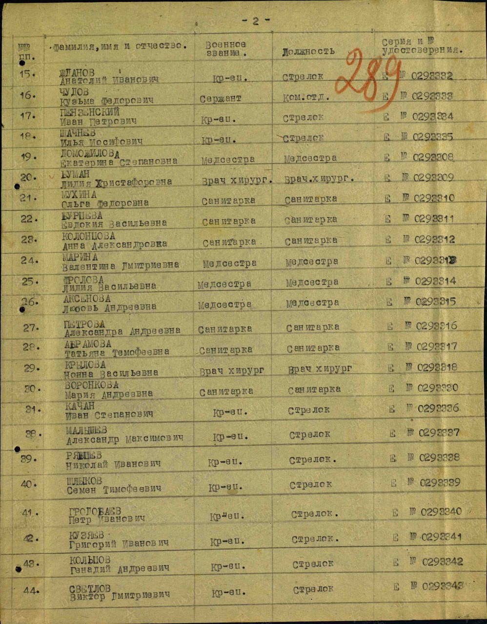 | участие в Великой Отечественной войне | - | город Мураши (Мурашинский район, Кировская область) - существующий н.п. | Воинское звание врач-хирург Воинская часть ЭГ 3170. Воинское звание: капитан мед. сл. ЦАМО. Учётно-послужная картотека. Шкаф 27. Ящик 25. Эвакогоспиталь № 3170 находился в г. Мураши Кировской области (железнодорожный клуб им. Коминтерна и школа № 28) с 14.08.1941 по 15.09.1944 Эвакогоспиталь № 3170 был переведен в г. Клецк Минской области Белорусской ССР дислоцирован с 30.10.1944 года. Расформирование госпиталя (Приказ № 284 от 25 октября 1945г). |