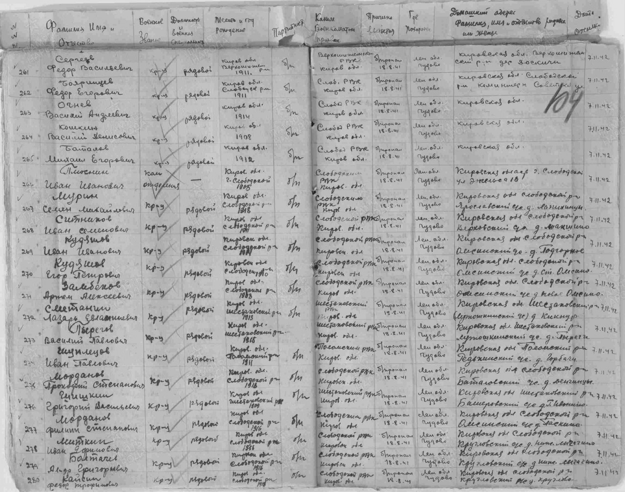 | призван Слободской РВК, Кировская область, Слободской район | Июль 1941 | город Слободской (Слободской район, Кировская область) - существующий н.п. | |