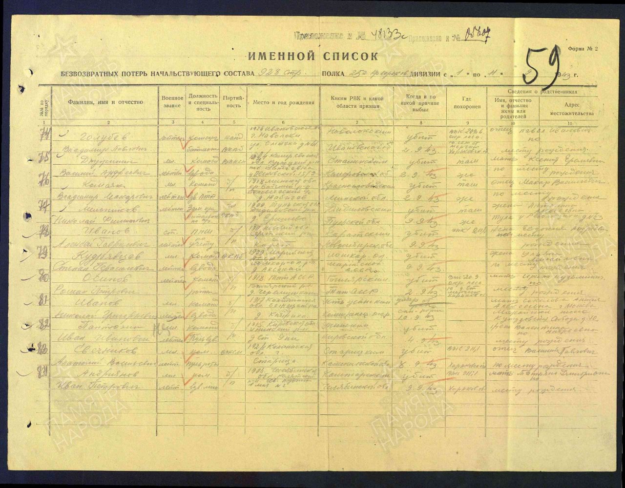 Списки воинов, погибших и пропавших без вести на фронтах Великой Отечественной войны