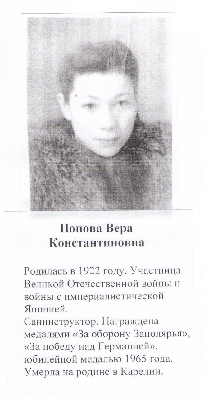 Родственники: муж Лев Владимирович (24.12.1916), дети Тамара, Юрий, Надежда, отец Сваринский, проживала г. Петрозаводск Карело-Финская ССР, г. Кировск Карелия, с. Волково Волковский с/с Слободской район Кировская область.