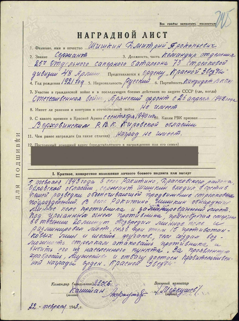 Воинская часть: 73 стрелковая дивизия , 73 стрелковая дивизия