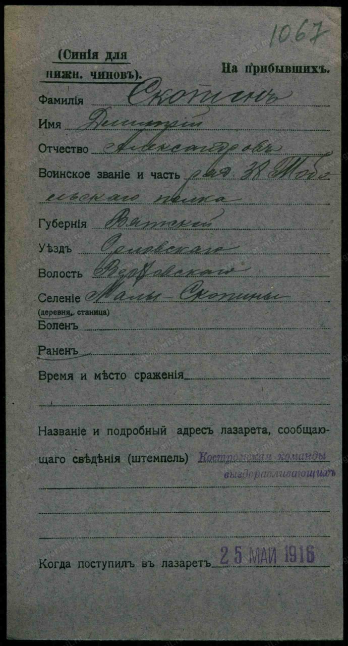 - Дата прибытия 25.05.1916
