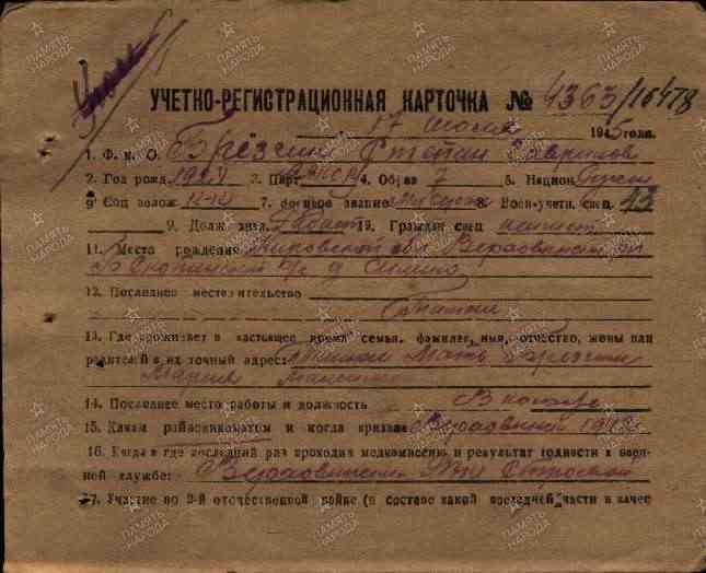 Дата и место призыва: __.__.1942 Верховинский РВК, Кировская обл., Верховинский р-н