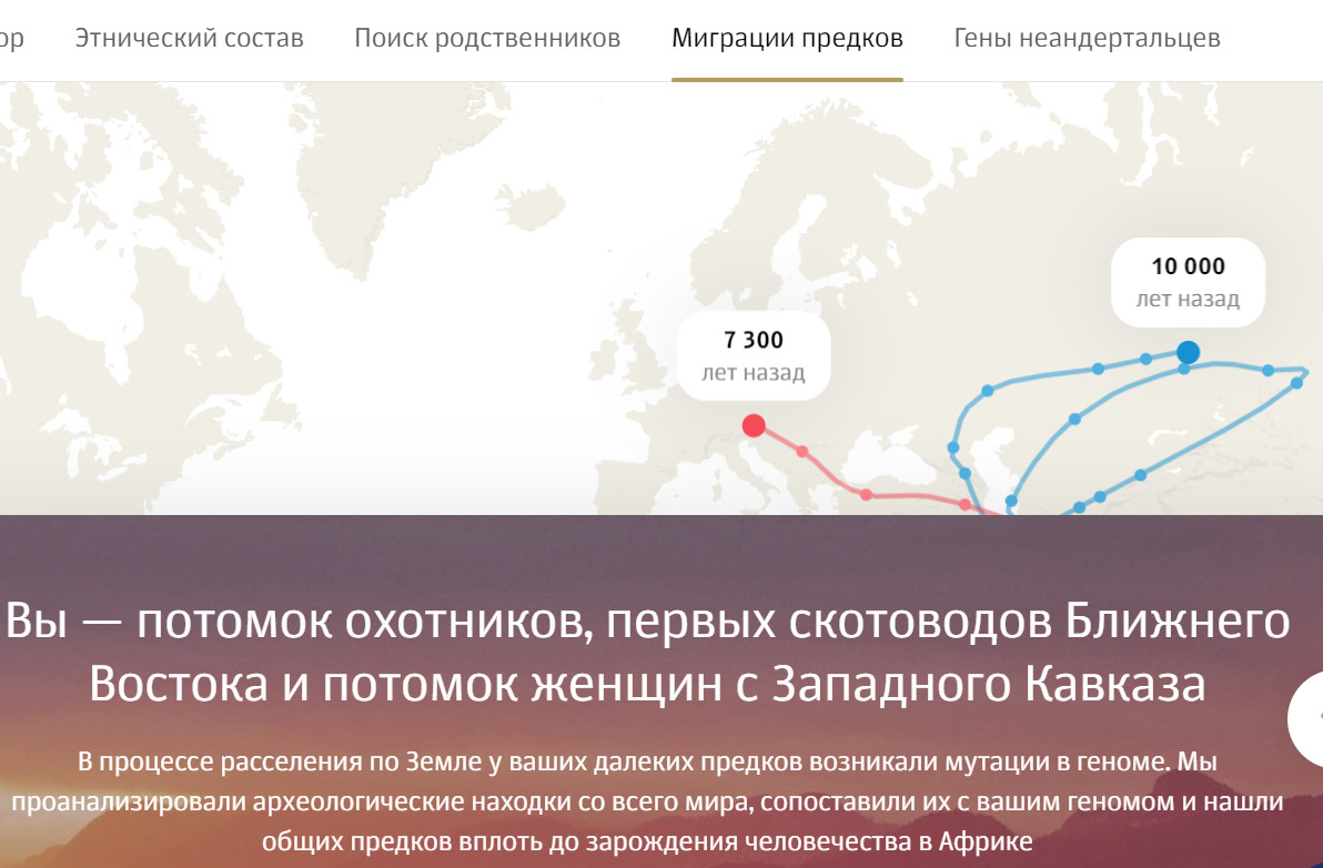 Правильнее полагать, что эта вкладка показывает, с какими регионами есть совпадение ДНК. Соответственно, включает информацию, не только откуда приехали мои предки, но и куда мои предки переселились и где оставили своих потомков.