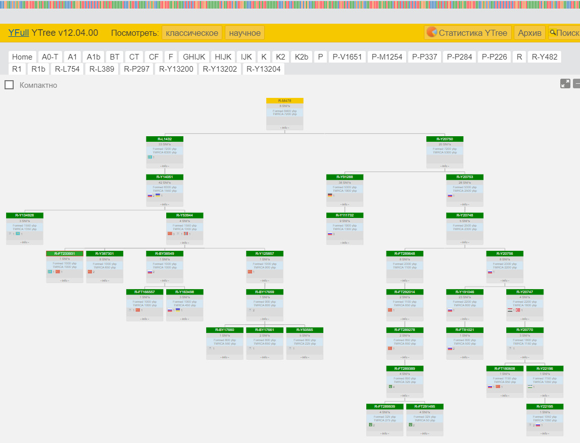 Сайт Yfull показывает структуру нижестоящих субкладов Y гаплогруппы R1b-M478