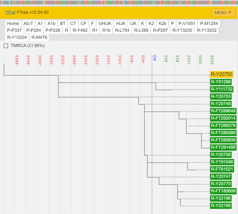Y гаплогруппа R1b-M478 разделяется на два субклада разделившихся около 5000 лет назад: R-L1432 и R-Y20750.