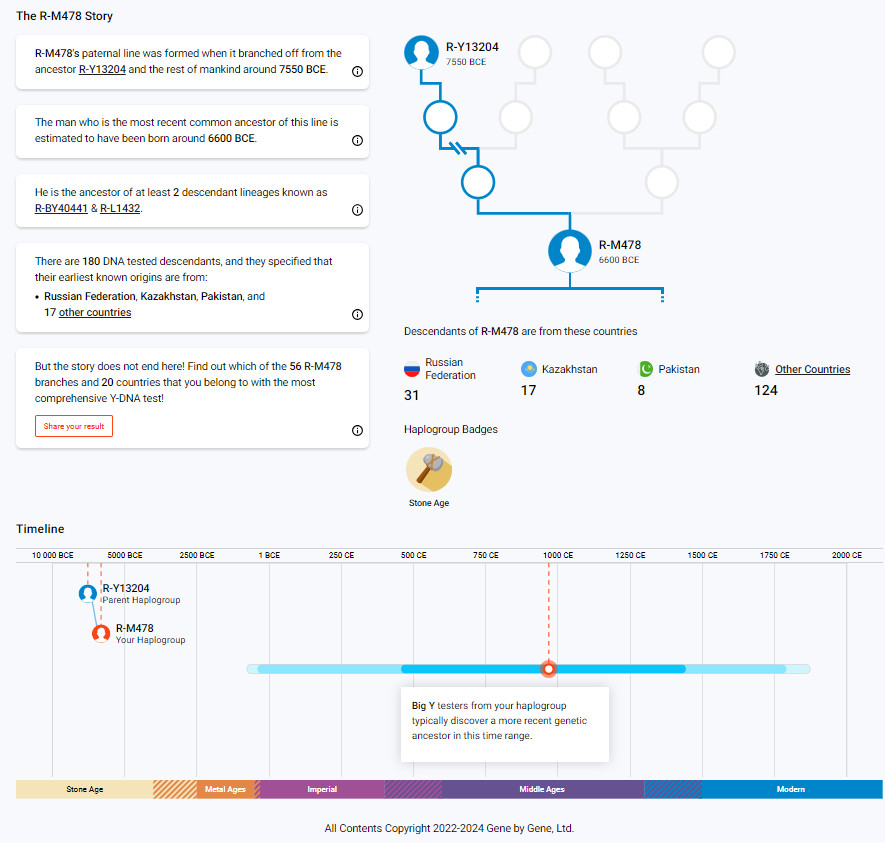 В Генотек на моей карте происхождение есть территории, это Кавказ, Восточный Тянь-Шань (Казахстан и Синьзян Уйгурский округ Китая) и Алтай (с северной Монголией). Именно в этих регионах компактно расположены места проживания отдельных родов носителей гаплогруппы R1b-M478, вероятно этим и объясняется появление этих регионов на вкладке Генотек.