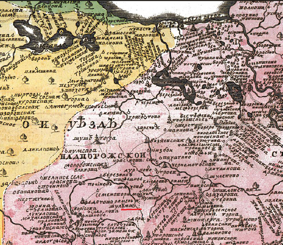 UPD 2 (23.08.2023) Первые найденные мной упоминания реки Шулма встречаются в Белозерской писцовой книге 1626-1627 гг., но очевидно, что сам гидроним более раннего происхождения. Наиболее старая (известная мне) карта, на которой зафиксирован топоним Шульма, составлена и издана в 1729-1731 гг. Также в Белозерском крае существовало Шул-озеро (первое упоминание - в жалованной грамоте от 1482 года), ряд гидронимов на ШУЛ можно завершить рекой Шулонема в Пинежье (совр. Архангельская область, упомянута в списке Двинских земель от 1471 года). Согласно специальной литературе, всё это - финно-угорские гидронимы и топонимы. Их фонетическая схожесть с фамилией Шульмин позволяет выдвинуть гипотезу об условном "северном" (белозерском или архангельском) происхождении фамилии Шул(ь)мин. Косвенно в пользу этой гипотезы говорит тот факт, что первые упоминания фамилии Шульмин встречаются ближе к условно "северным" районам Вятки (Хлынову и Слободскому) куда Шульмины могли прийти как раз с северо-запада, вместе с основной массой русских переселенцев.