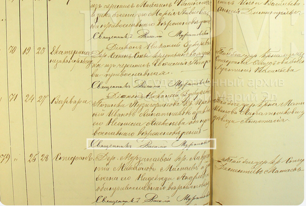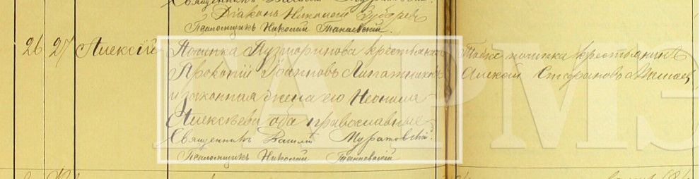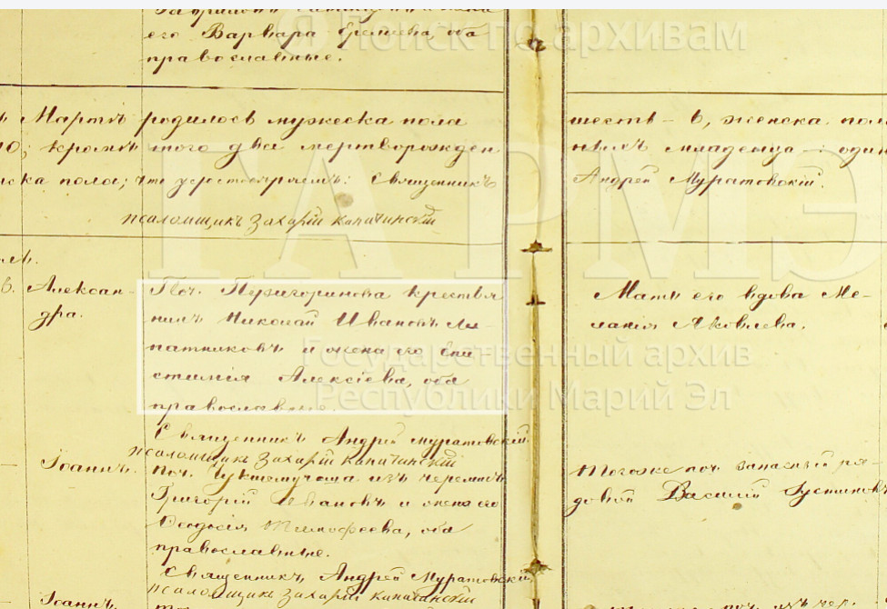 2) Николай Иванович + Епистилия Алексеевна. Дети: Александра (5.04.1886)