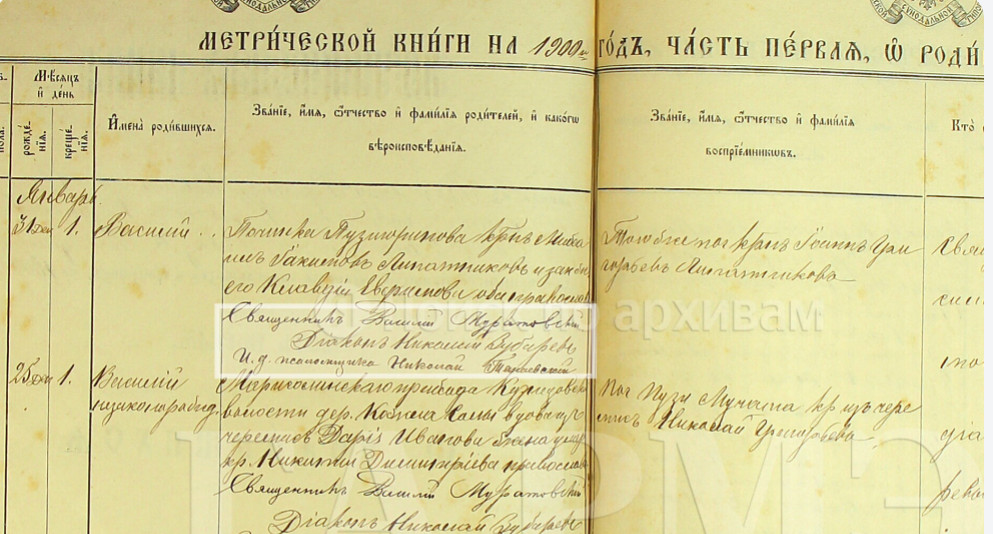 Василий Якимович ( умер 13.02.1903) + Александра Ананьевна. Дети: Василий ( 18.02.1903 - 19.03.1904)