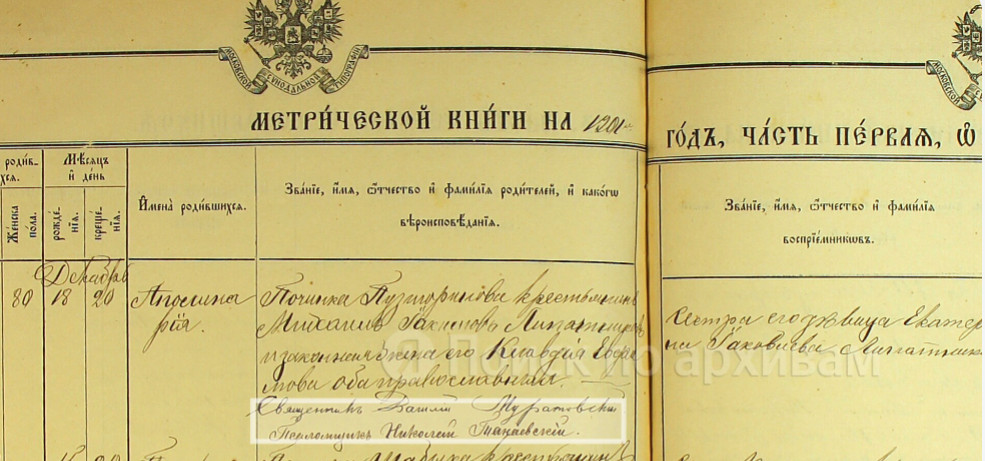 Михаил Якимович + Клавдия Ефимовна. Дети: Аполинария ( 18.12.1901)