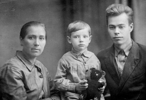Иван Игнатьевич Халтурин (справа) со своей мамой Анной Федоровной Смирновой-Халтуриной и сыном Виталием, моим отцом. Ленинград, примерно 1930 год.