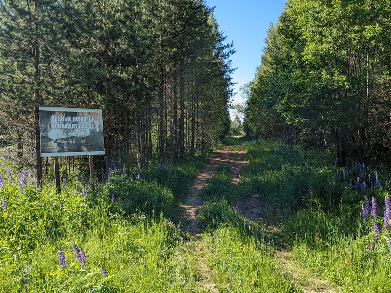 Все шло по плану, мы проехали достаточно далеко по плохой дороге, вышли из машины и направились в сторону реки (ориентиром была просека, на фото она чуть дальше столба налево).