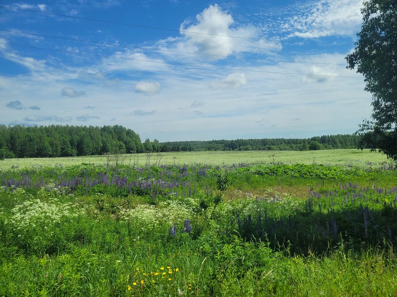 Утром позавтракав в Шабалино, мы отправились через Свечу в сторону Круглыжей. Погода была чудесная, дорога красивая, вокруг поля с разноцветными цветами.