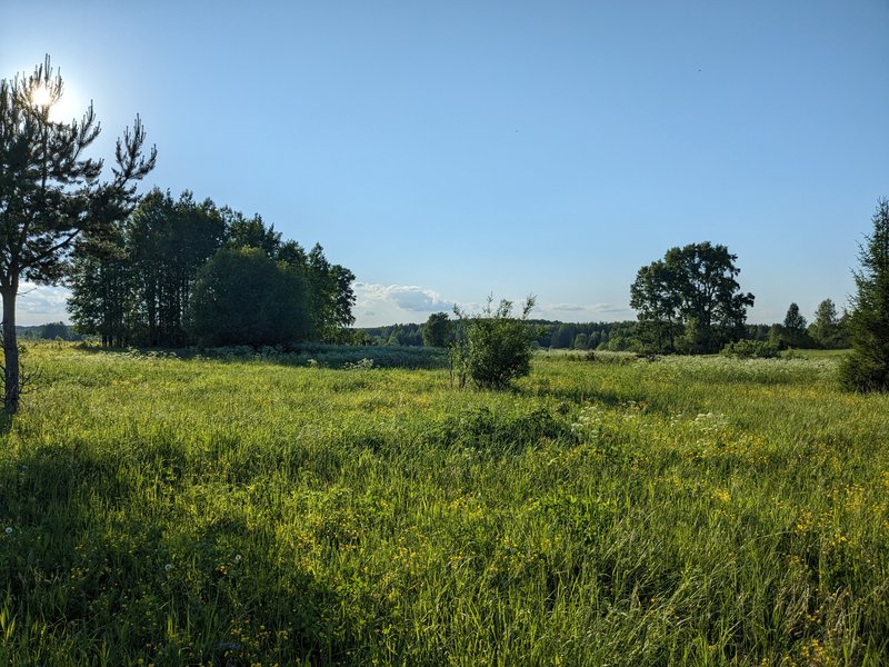 Про диких зверей рассказал, что в этой местности есть лоси и кабаны, медведей нет. Змей тут тоже нет, но они есть южнее к Свече. Борщевика тут тоже нет. Красота!