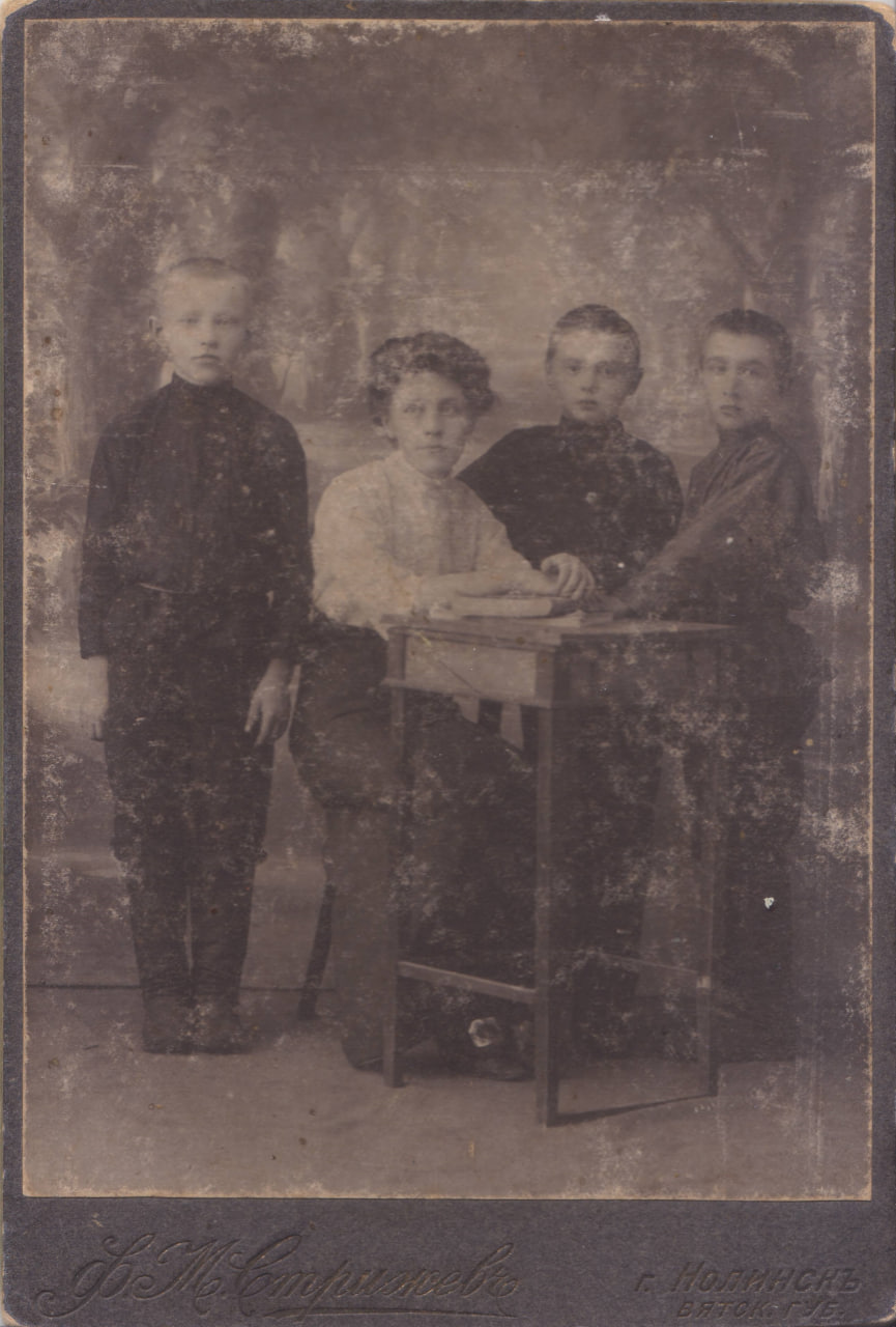 В детстве он был маленького роста, точно по пословице: «Мал, да удал». Проявлял немалые способности, и учительница решила подготовить его в реальное училище, которым славился город Нолинск: Анна Петровна Коробова учила его за свой счет!