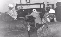 «На фабрике была трехсменка. В сезон работало до 220 человек, так как было много внепроизводственных работ: заготовка дров для сушки валенок, столярные работы, помощь в сельскохозяйственных работах в колхозах. Валенки сушили над открытым огнем, поэтому цех часто горел. Шерсть завозили, в основном, из Казахстана и Туркмении, местной было мало. Выпускали 100-200 пар валенок в сутки. К зиме часть женщин увольняли, старались бездетных или тех, кого мог обеспечить муж. Но вскоре за счет механизации на фабрике стало трудиться всего 100-120 человек" – рассказывает бывший директор фабрики Н.Г.Одегова.