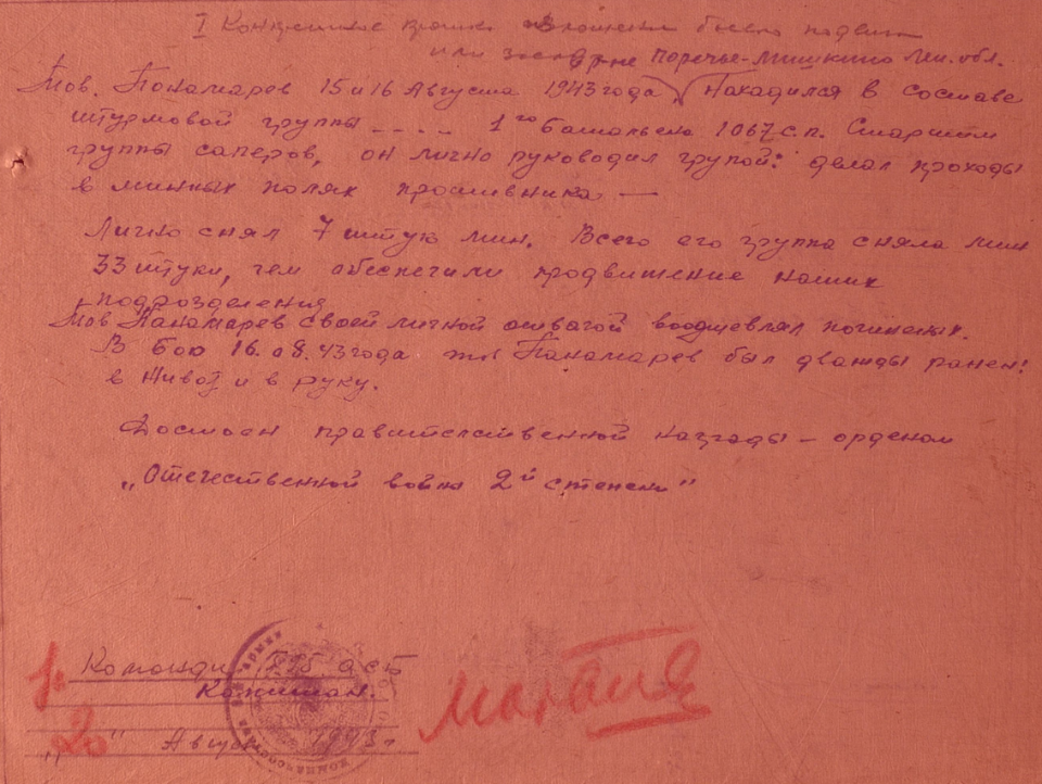 Указ Президиума Верховного Совета №209/856 от 30.05.51 о награждении медалью «За отвагу»