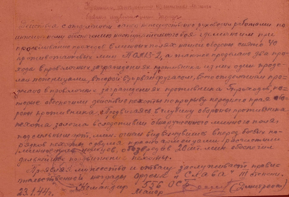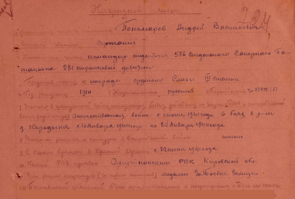 Приказ 281 сд №02 от 31.01.1944 о награждении орденом «Славы 3 степени»