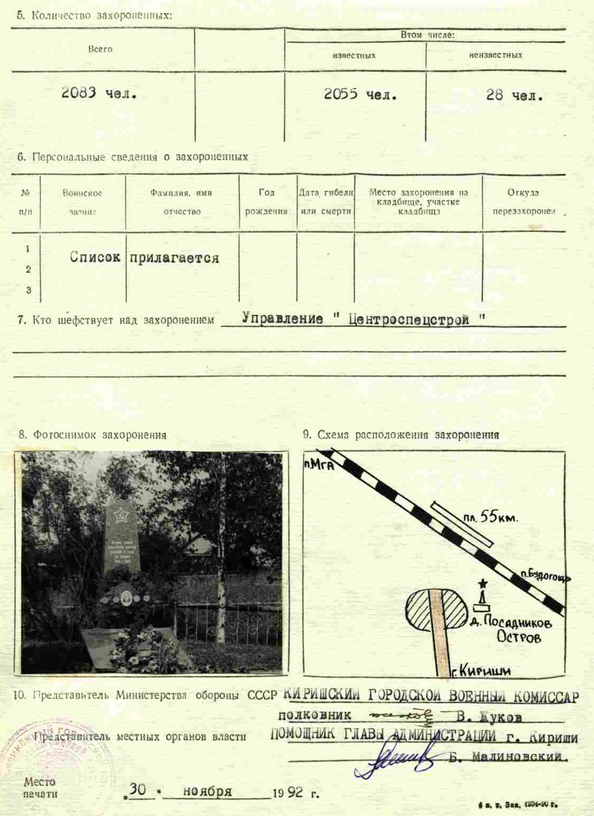 Место захоронения: Киришский р-н, д. Посадников Остров