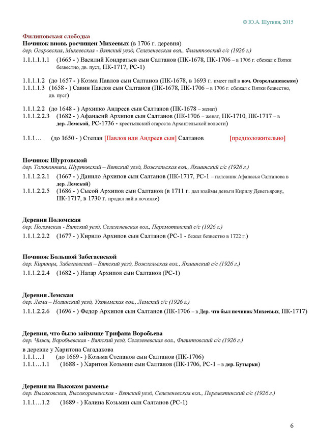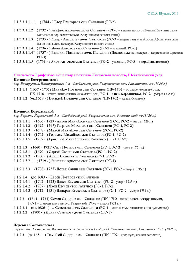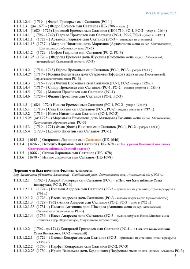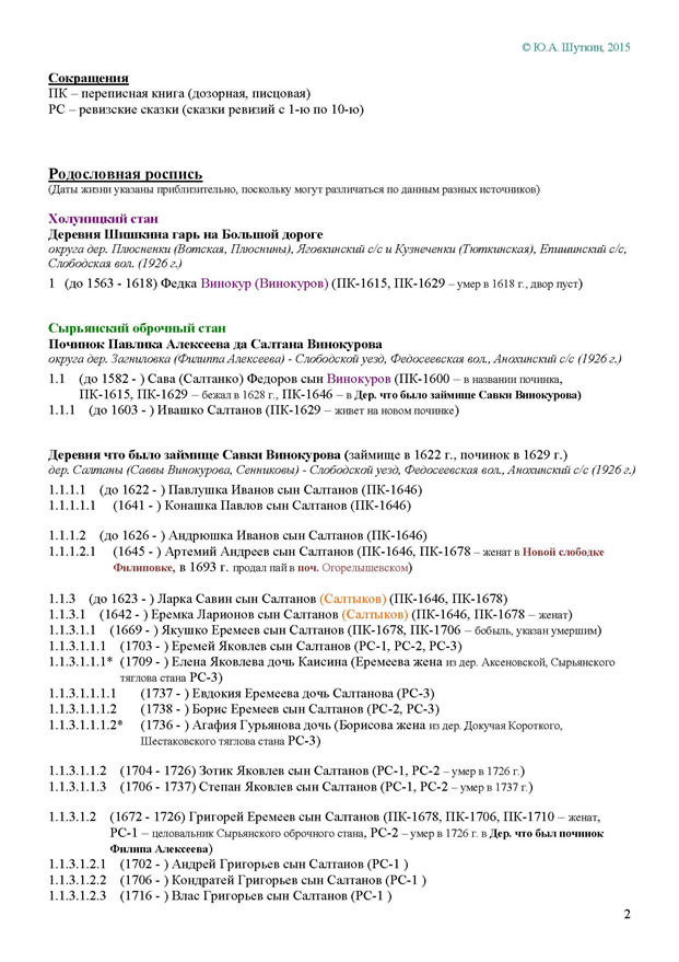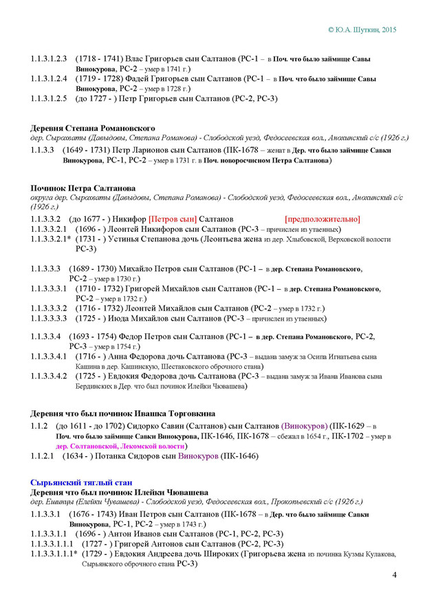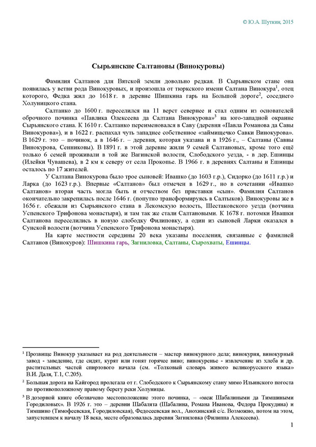 Фамилия Салтанов для Вятской земли довольно редкая. В Сырьянском стане она появилась у ветви рода Винокуровых.