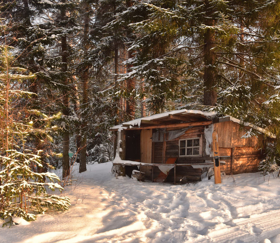 Таёжная избушка местных охотников. Фото Д. Логиновского.
