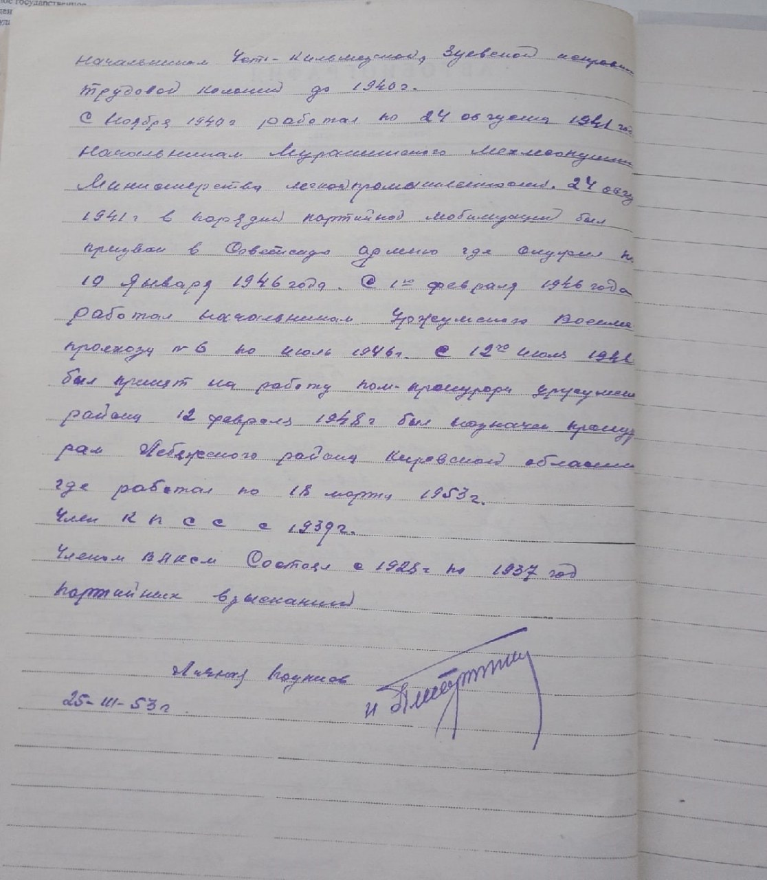 | Изменил место проживания | Между 13.01.1948 и 18.12.1953 | пгт Лебяжье (Лебяжский район, Кировская область) - существующий н.п. | прокурор Лебяжского района Кировской области |