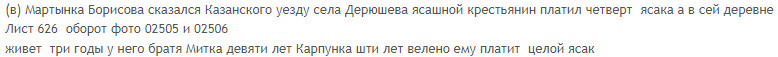 А на основании чего сделан вывод о переселении Мартынова из В.Заструг? Потому что обе деревни ясашные, и в той и в другой впоследствии появились Бабушкины? ДокУменты есть? Я понимаю, что все доказательства начинаются с «предположим», но…