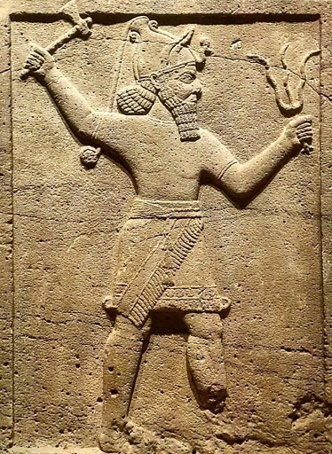 Древний барельеф бога грозы в одной руке у него молот (топор) в другой молния (изображение из открытых источников)