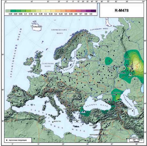 На Русской равнине выделяется три обособленных области носителей гаплогруппы R-M478 разделившихся несколько тысяч лет назад.